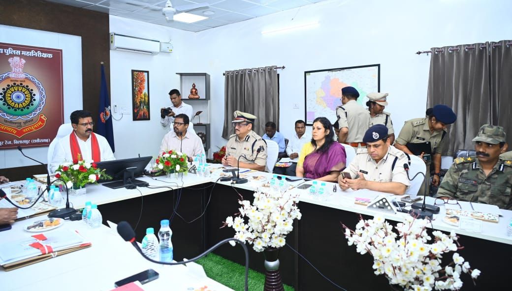ऋषिकेशत्रिवेदी////उप मुख्यमंत्री श्री विजय शर्मा ने बिलासपुर पुलिस महानिरीक्षक कार्यालय में संभाग अन्तर्गत पुलिस महानिरीक्षक सहित रेंज अन्तर्गत बिलासपुर, कोरबा, रायगढ़, जांजगीर-चांपा, सक्ती, मुंगेली, गौरेला-पेण्ड्रा-मरवाही और सारंगढ़-बिलाईगढ़ जिले के पुलिस अधीक्षकों की बैठक लेकर जिले में बैठक में लंबित गंभीर अपराधों की स्थिति, ब्लाइंड मर्डर के अनसुलझे मामलों, चाकूबाजी, तलवारबाजी और फायरिंग के मामलों की समीक्षा, लंबित मर्ग के प्रकरणों, राष्ट्रीय और राज्य मानव अधिकार आयोग के लंबित मामलों की स्थिति, महिला और बाल अपराधों के लंबित प्रकरणों पर चर्चा और पीड़ितों को क्षतिपूर्ति देने, मानव तस्करी के लंबित मामलों, गुमशुदा महिलाओं, पुरुषों और बच्चों के प्रकरणों, अनुसूचित जाति और जनजाति पर घटित अपराधों एवं राहत राशि के वितरण की स्थिति, चिटफंड प्रकरणों की अद्यतन स्थिति, एनडीपीएस अधिनियम के तहत दर्ज मामलों की जांच की प्रगति और मादक पदार्थों की नष्ट करने की प्रक्रिया, गौवंश से संबंधित अपराधों, वाहन जब्ती और राजसात की कार्यवाही, जिले के कानून व्यवस्था के संबंध में आगामी कार्ययोजनाओं और जिले में लागू की जा रही बेस्ट प्रैक्टिस पर बिन्दुवार समीक्षा की।