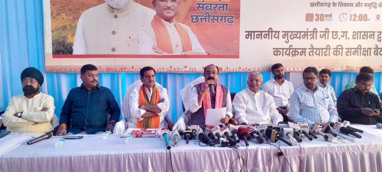 ऋषिकेश त्रिवेदी////उप मुख्यमंत्री श्री अरुण साव ने आज प्रेस-कॉन्फ्रेंस में 30 मार्च को प्रधानमंत्री श्री नरेन्द्र मोदी के छत्तीसगढ़ प्रवास की तैयारियों की जानकारी दी। उन्होंने कार्यक्रम स्थल बिलासपुर के मोहभट्ठा मैदान में आयोजित प्रेस-कॉन्फ्रेंस में प्रधानमंत्री द्वारा छत्तीसगढ़ को दिए जाने वाले सौगातों के साथ ही उनके कार्यक्रम के लिए शासन-प्रशासन द्वारा की गई व्यापक व्यवस्थाओं के बारे में पत्रकारों को विस्तार से बताया। केन्द्रीय आवासन और शहरी कार्य राज्य मंत्री श्री तोखन साहू, विधायक श्री धरमलाल कौशिक और श्री सुशांत शुक्ला, अपर मुख्य सचिव श्री मनोज पिंगुवा तथा संभागायुक्त श्री महादेव कावरे सहित आयोजन की तैयारियों से जुड़े विभिन्न विभागों एवं बिलासपुर जिला प्रशासन के वरिष्ठ अधिकारी भी प्रेस-कॉन्फ्रेंस में मौजूद थे।