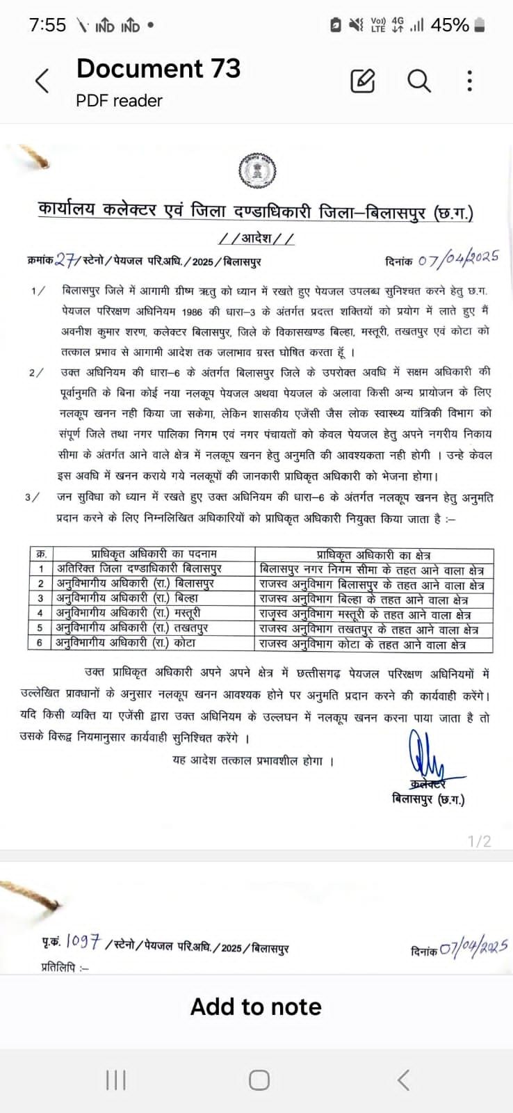 ऋषिकेश त्रिवेदी ////भूजल स्रोत के लगातार गिरने से अब पेयजल की समस्या विकराल रूप ले चुकी है,जिसके चलते कई वार्डो में टैंकरों से पानी पहुंचाया गया है। वहीं कुछ गांवों में कई कई किलोमीटर दूर से ग्रामीण पानी ला रहे हैं।पूरे जिले हा हा कार मचा हुआ है।पेयजल की मांग को लेकर रोज दर्जनों ज्ञापन लोग दे रहे हैं जिसको देखते हुए सबसे पहले तो नलकूम खनन पर रोक लगा दी गई है।सक्षम अधिकारी ही खनन का आदेश दे सकते हैं।इसके लिए sdm या संबंधित अन्य अधिकारी समस्या का अवलोकन कर खनन का आदेश देंगे।फिलहाल समस्या को देखते हुए जलाभाव घोषित किया गया है।जिसके आधार पर शासन स्तर पर पेयजल की विशेष व्यवस्था बनाई जाएगी।