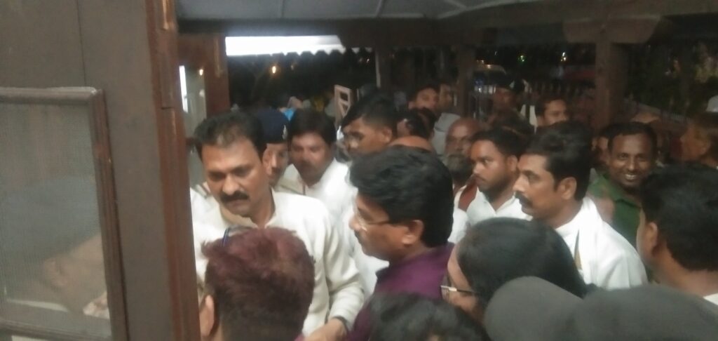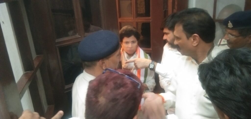 ऋषिकेश त्रिवेदी::::छत्तीसगढ़ भवन में चल रहे कांग्रेस की बैठक का दौर देर रात तक चलता रहा।इस बीच अपने अपने समर्थकों के साथ पहुँचे नेताओं की भीड़ भी पहुंची।दावेदार अपना वजन दिखाने भारी संख्या में समर्थक ले पहुँचे, जो अपने नेता के लिए बीच बीच मे हुटिंग भी कर रहे थे।जिस कमरे में प्रभारी शैलजा विधानसभावार मुलाकात कर रही थी तब कुछ नेताओं और समर्थकों के बीच धक्का मुक्की होने लगी ।जिससे कमरे का दरवाजा खुल जा रहा था,और आवाज अंदर तक जा रही थी,जिससे नाराज शैलजा बाहर निकली और समर्थकों को अनुशासन में रहने की हिदायत दी।तब मस्तूरी और बिल्हा के समर्थक ज्यादा संख्या मे पहुंच गए थे।हालांकि अपनी प्रभारी के तेवर देख कुछ देर के लिए सन्नाटा पसर गया फिर सब नेता कमरे से दूर चले गए तब जा कर माहौल शांत हुआ