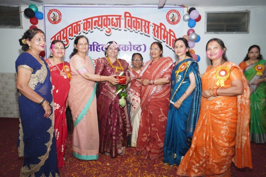 ऋषिकेश त्रिवेदी ////समाज के इमलीपारा पर स्थित कान्यकुब्ज भवन में कार्यक्रम का शुभारंभ किया गया मुख्यअतिथि श्रीमती नलिनी पांडे एवं विशिष्ट अतिथि श्रीमती रितु शैलेश पांडे ,समाज की अध्यक्षा चंद्र किरण बाजपेई द्वारा दीप प्रज्वलित कर मां सरस्वती की पूजा अर्चना के साथ की गई ।इसके पश्चात मुख्यअतिथि श्रीमती नलिनी पांडे का स्वागत समाज की अध्यक्षा श्रीमती चंद्र किरण बाजपेई एवं सचिव श्रीमती ममता तिवारी के द्वारा किया गया ।एवं विशिष्ट अतिथि श्रीमती रितु शैलेश पांडे का स्वागत कार्यकारी अध्यक्ष श्रीमती नमिता बाजपेई, उपाध्यक्ष श्रीमती मृदुला अवस्थी, उपाध्यक्ष श्रीमती सुमन अवस्थी द्वारा किया गया कार्यक्रम की शुरुआत श्रीमती प्रगति शुक्ला द्वारा गणेश वंदना से की गई इसके पश्चात विशिष्ट कार्यों के लिए समाज की महिलाओं को सम्मानित किया गया। जिसमें श्रीमती सीमा मिश्रा, ममता मिश्रा, वीणा पानी दुबे एवं शेफाली मिश्रा को उनके विशिष्ट कार्यों के लिए सम्मानित किया गया